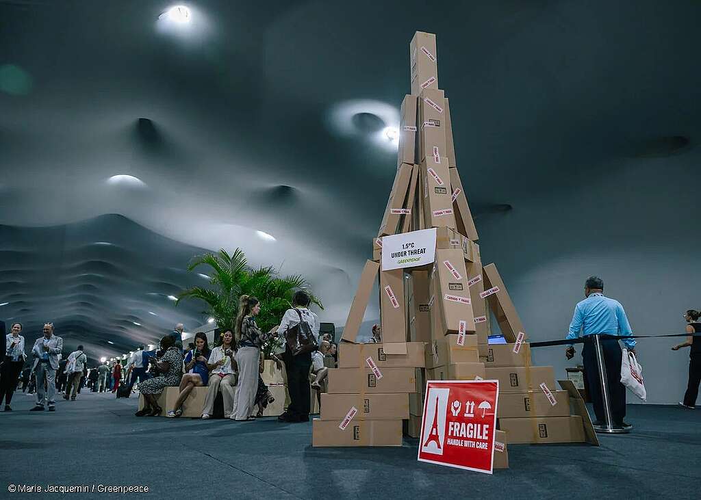 V letu 10. obletnice Pariškega sporazuma je Greenpeace postavil repliko Eifflovega stolpa, sestavljeno iz kartonskih škatel, z napisom »Krhko. Ravnajte previdno.« (angleško: ‘Fragile. Handle With Care’), da bi simbolizirali, kako je omejitev 1,5 °C, dogovorjena v Parizu, ogrožena.