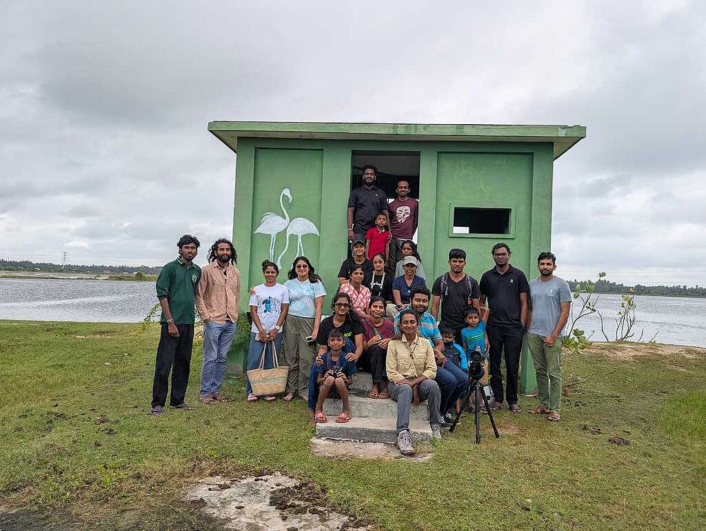Greenpeace South Asia recently had the pleasure to join and support an inspiring initiative by the Mannar Bird Club titled “Birds, Brushes, & Binoculars.” In collaboration with the team, we mobilized a small group of volunteers to support the activity, especially for the creation of wall art inside and outside the bird blind at the Koraikulam Bird Observatory.