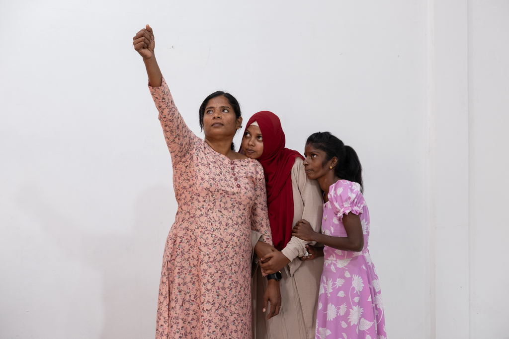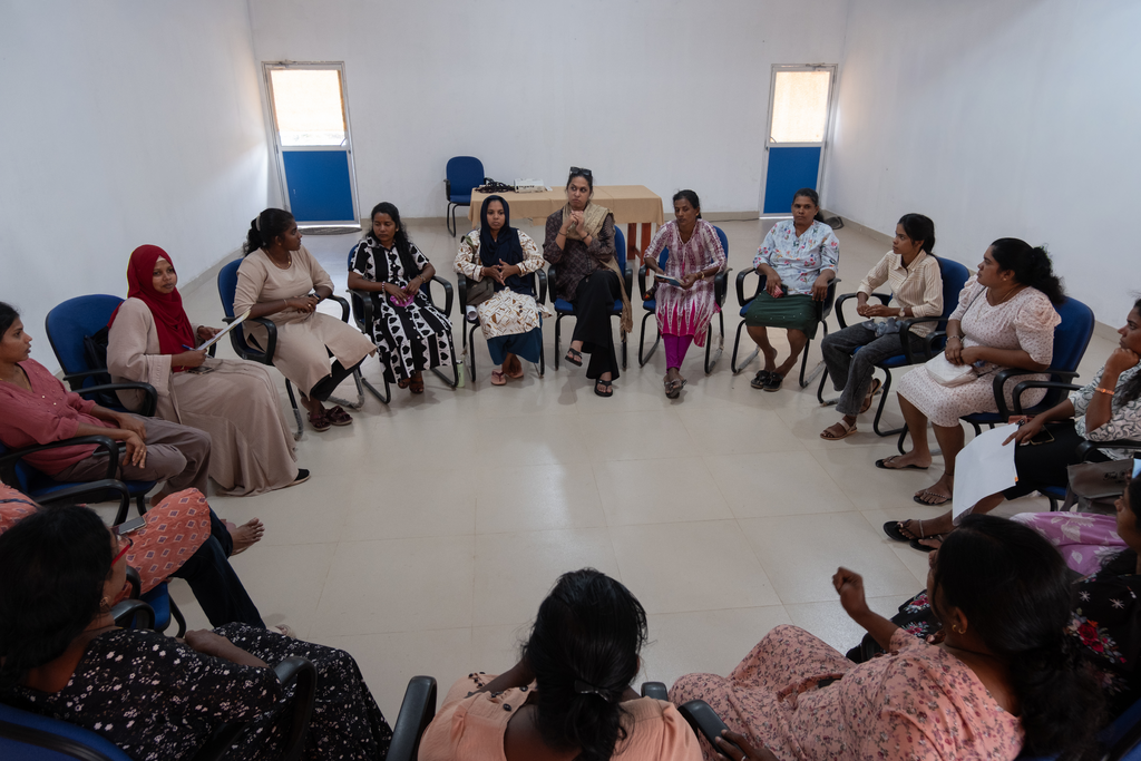 Women came together across villages. They were joined by two artists, Vicky Shahjehan and Fathima Sahana, both visual artists from outside Mannar who have been creating murals across Sri Lanka.