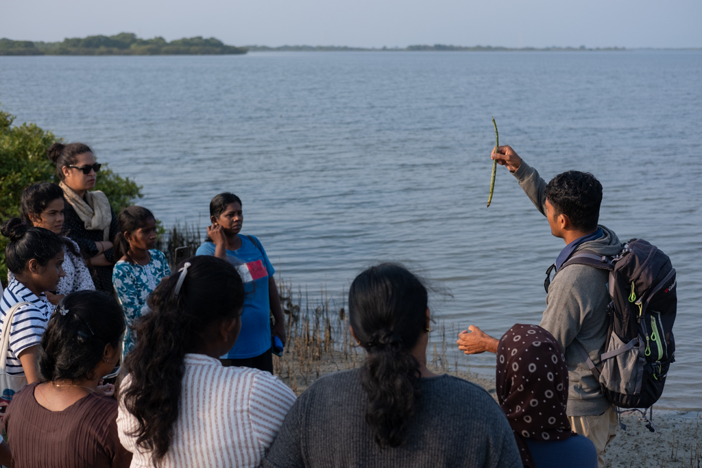 Later, they walked through mangroves, along the edges of water and land, as Edison spoke about what holds Mannar together. How these systems protect the coastline. How they sustain life. And how they are changing.