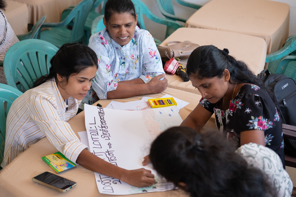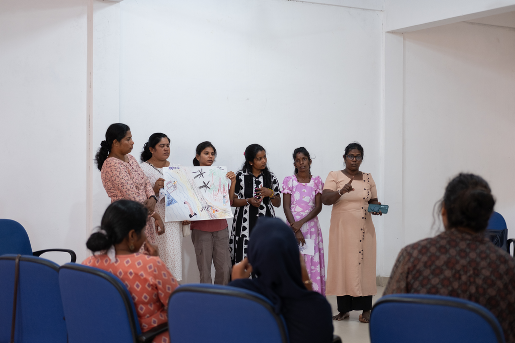 In groups, they drew the Mannar they know. The sea, the palmyrah, the land, the homes. Alongside it, the realities they face. Environmental loss, extractive industries, shifting coastlines. Social pressures, labour, migration, and the weight carried by women, often quietly.