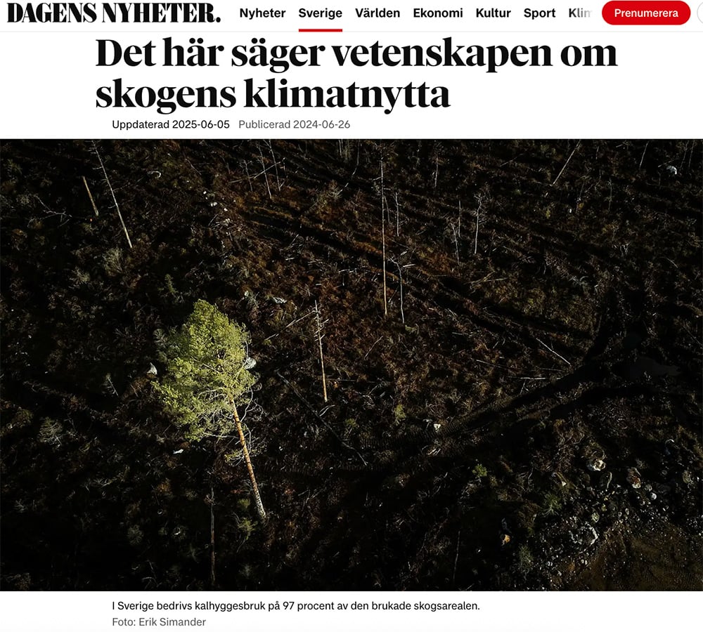 Skogsindustrin har de senaste åren velat framställa det för naturen så uppenbart brutala kalhyggesbruket som något nödvändigt att fortsätta med – för klimatet. Detta har de, trots att vetenskaplig forskning säger motsatsen tyvärr lyckats få många att tro på. Många politiker och beslutsfattare sprider samma missvisande budskap, och gör även mycket för att dagens ohållbara skogsbruk ska kunna fortsätta. SCA, som är Europas största privata skogsägare, är drivande i denna greenwashing av skogsbrukets klimatpåverkan, vilket var en central del i att SCA 2025 tilldelades årets Greenwashingpris av föreningen Jordens vänner.