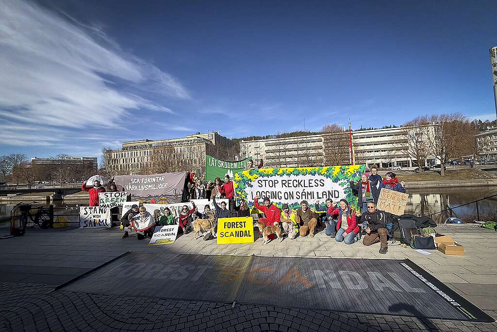 Sundsvall, 2026-03-27. Utanför lokalerna där det hårt kritiserade skogsbolaget SCA håller sin årsstämma idag har omkring 50 representanter från 8 miljöorganisationer och Ohredahke sameby samlats för att protestera mot bolagets ohållbara och kontroversiella skogsbruk. Stora internationella bolag som Nestlé och Zalando har identifierat SCA som en högriskleverantör: Zalando har beslutat att fasa ut skogsbolaget SCA ur sin leverantörskedja, medan Nestlé slutar köpa in nyfiber från SCA, båda med hänvisning till bolagets kontroversiella skogsbruk. I centrum för kontroversen står deras avverkningar av kontinuitetsskog.