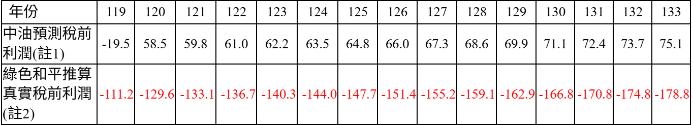 註2:綠色和平依據中油過去10年乙烯內銷平均價格(每噸2.9萬元)計算,未納入乙烯以外產品。