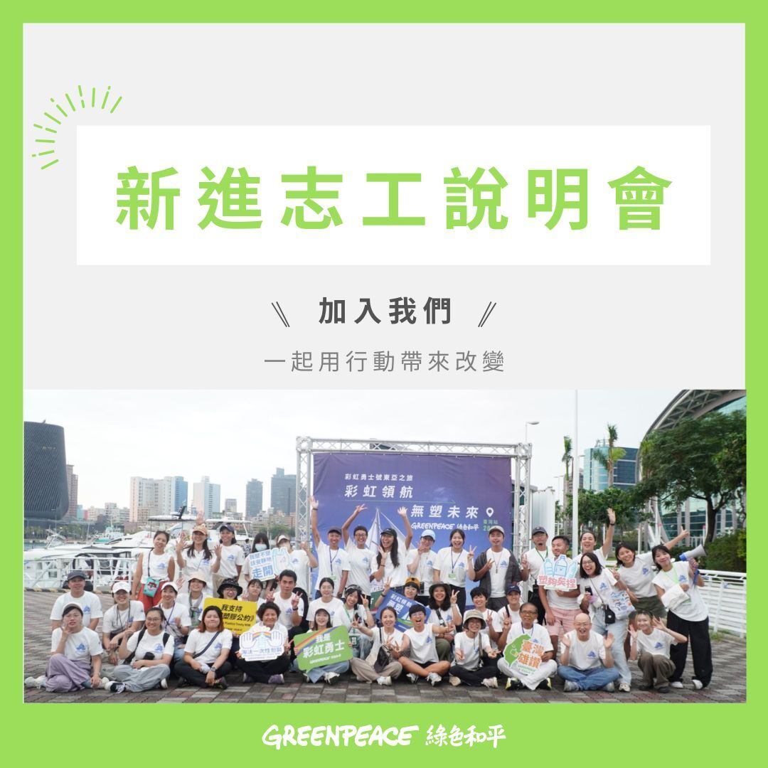 - 集合地點:臺北市政府東門廣場綠色和平攤位前