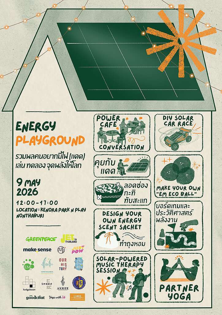 Energy Playground คือพื้นที่ที่คำว่า พลังงาน อยู่ในบทสนทนา ในดอกไม้ ในอาหาร ในของเล่น ในเสียงเพลง ในร่างกายของเราเอง และอาจเป็นพื้นที่ที่เราค่อย ๆ ตั้งคำถามร่วมกันว่าเรามีแสงอาทิตย์ทุกวัน แล้วทำไมค่าไฟยังขึ้นจากพลังงานนำเข้าและเราจะช่วยกันขยับอนาคตไปในทิศทางที่ดีกว่านี้ได้อย่างไร