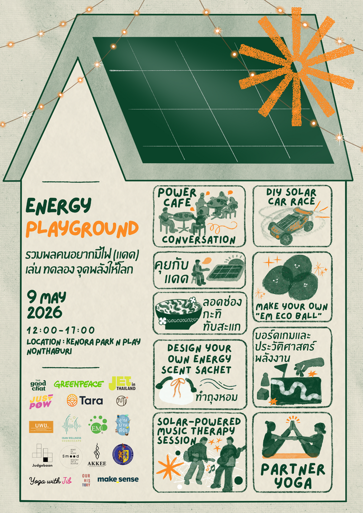 ถ้าคุณเคยคิดว่า “ค่าไฟแพงขึ้นอีกแล้วเหรอ…” “โซลาร์มันติดยังไงนะ” “การใช้พลังงานของโลกเรามันจะไปทางไหนกันแน่” หรือแค่อยากใช้เวลากับคนที่คุณรัก มีแสงแดด มีลม มีกลิ่นหอม มีดนตรี มีของเล่น