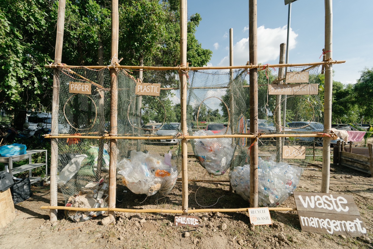 นอกจากการลดตั้งแต่ต้นทางแล้ว ในงานยังวางระบบจัดการขยะปลายทางอีกด้วย และมีการแยกขยะให้ละเอียดที่สุดเท่าที่จะทำได้ จึงมีถังสำหรับใส่ขยะกว่า 10 ถัง คือ กระดาษ พลาสติกสะอาดและชั้นเดียว พลาสติกหลายชั้น ขวดพลาสติก แก้ว กระเบื้อง อลูมิเนียม หลอดตะเกียบ ขยะอาหาร และขยะทั่วไป