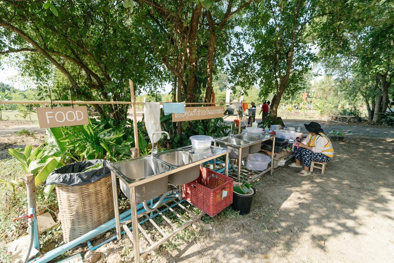 เราเริ่มวางแผนกันกับพี่หนุ่ย ชนกนันท์ นันตะวัน จากสม-ดุลเชียงใหม่ และป้าหน่อย พจนา สวนศรี จาก Craft & Care ทั้งวิธีการสื่อสาร วิธีการจัดการพร้อมคนที่จะมาช่วยจัดการ ที่สำคัญคือการสื่อสารภายใน ซึ่งก็คือ ทีมงานทุกคน คนที่นำสินค้ามาขายภายในงานให้เข้าใจตรงกันและเห็นความสำคัญของการจัดการขยะร่วมกันเพื่อขอความร่วมมือให้ทุกคนไม่ใช้ภาชนะแบบใช้ครั้งเดียวแล้วทิ้งให้ได้มากที่สุด รวมทั้งการสื่อสารภายนอก ซึ่งสม-ดุลเชียงใหม่รับหน้าที่นี้ไป เพื่อขอรับบริจาคภาชนะก่อนงานเริ่มประมาณ 1 เดือน ผลปรากฏว่า มีคนนำถ้วยชามที่ไม่ใช้แล้วมาบริจาคจำนวนหนึ่ง แต่ก็ยังไม่เพียงพอสำหรับใช้ในงาน เราจึงไปขอยืมจากวัดมาเพิ่มเติม