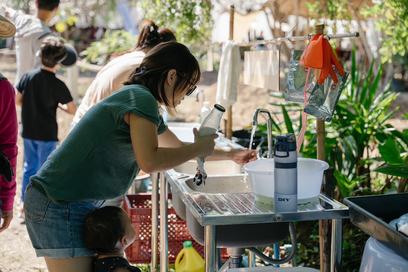 นอกเหนือจากกิจกรรมมากมายภายในงาน สิ่งที่ทำให้เราประทับใจมาก ก็คือ การนำ “ระบบยืมคืนภาชนะ” มาใช้ภายในงานด้วย รองรับการใช้บรรจุภัณฑ์ทั้งสำหรับพ่อค้าแม่ค้าและลูกค้า และภาชนะทุกประเภทถูกจัดเตรียมรอคอยให้ทุกคนหยิบใช้อย่างครบถ้วน ทั้ง จานชาม ช้อนส้อม ตะเกียบ แก้วน้ำ แก้วมัค แก้วน้ำ สิ่งที่เราจนชินตาในทุกวัน คือ ในทุก ๆ เช้า ผู้ขายจะเดินมายืมภาชนะที่จุดยืมคืนภาชนะแล้วนำมาล้างคืน ณ จุดเดิมในตอนเย็น เช่นเดียวกันกับลูกค้า เมื่อต้องการซื้อสินค้า ก็สามารถเดินมายืมภาชนะได้ เมื่อคาดคะเนจากสายตาแล้ว ทุกคนปฏิบัติกันกว่า 90% เลยทีเดียว จากการเก็บข้อมูลแบบคร่าวๆ ของเราแล้วพบว่า สามารถลดการใช้พลาสติกที่ใช้ครั้งเดียวทิ้งลงได้กว่า 3,000 ชิ้นตลอดทั้ง 5 วัน