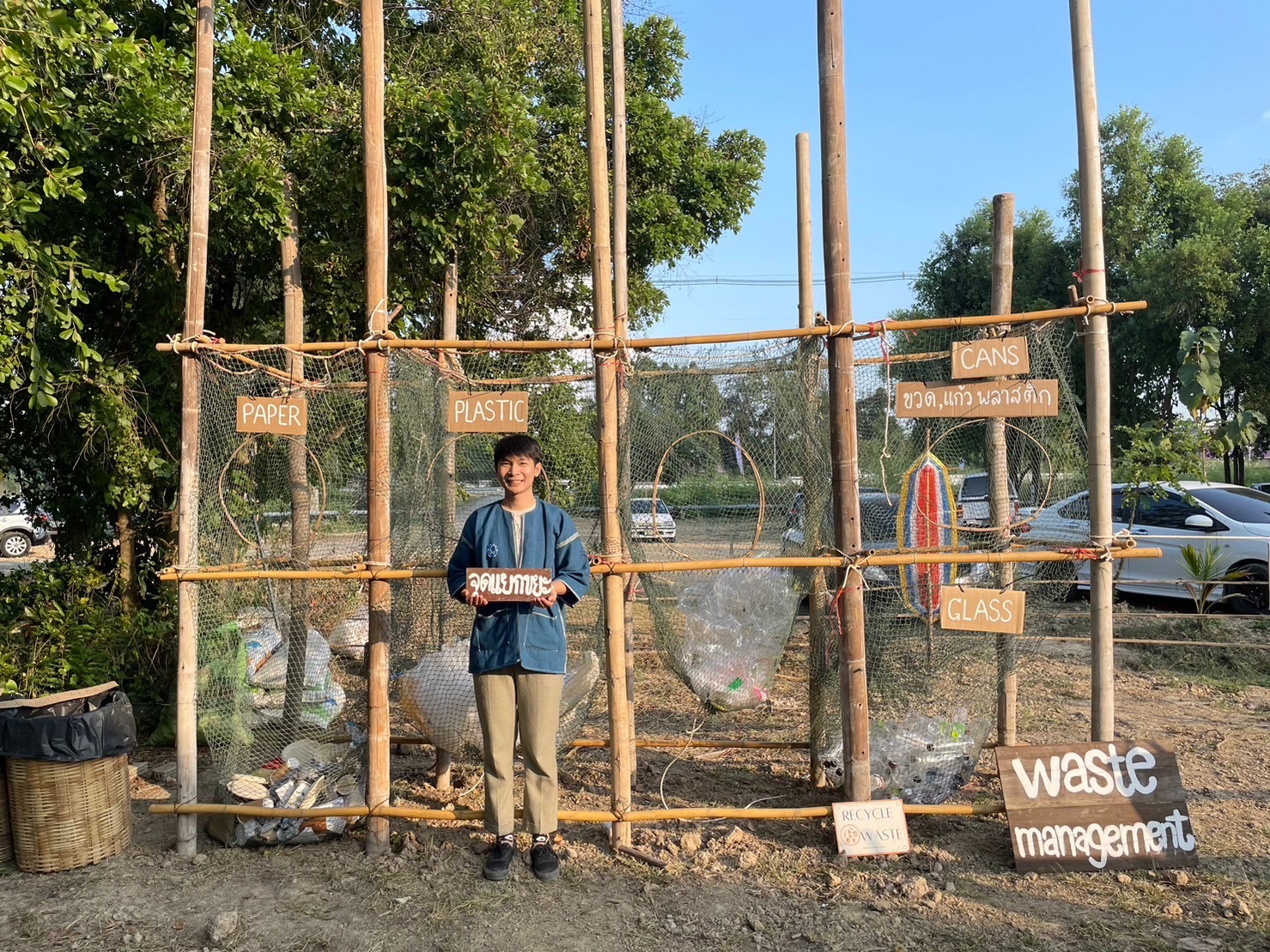 สาเหตุที่เรามีสเตชั่นขึ้นในงานเป็นเพราะว่าเมื่อปีที่แล้วตอนเราจัดงาน“เส้น (SEN)” ปีที่แล้ว ผลปรากฏว่าทีมงานต้องมาเจอกับปัญหาก้อนใหญ่หลังจบงาน คือ กองขยะใหญ่มาก ซึ่งเป็นเศษเหลือทิ้งจากงาน ทั้งขยะเปียก กระดาษ พลาสติก และทุกอย่าง คือ ใส่รวมกันหมด ผลปรากฏว่าขยะทั้งหมดเน่าเหม็นและยากสำหรับการกำจัด ทำให้เรากลับมาตั้งคำถามกับตัวเองว่าที่ผ่านมาเราพยายามทำงานเกี่ยวกับเรื่องสิ่งแวดล้อมและความยั่งยืน แต่พอเราจัดงานทำไมถึงมีกองขยะมากมายขนาดนี้ เราจึงคุยกันกับทีมงานและจึงเกิดไอเดียนี้ขึ้นมา ซึ่งนอกจากจะเพื่อจัดการขยะภายในงานแล้ว เรายังทำขึ้นเพื่อสร้างแรงบันดาลใจให้กับหลายคนที่ต้องการดูแลรักษาสิ่งแวดล้อม เราเลยทำสเตชั่นแยกขยะให้เห็นเด่นชัดและให้อยู่ตรงประตูทางเข้า เพื่อสร้างความตระหนักให้ทุกๆคนเห็นความสำคัญของเรื่องนี้เช่นกัน