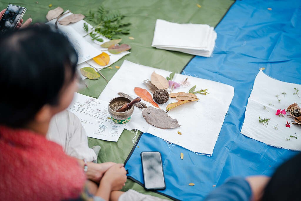 - เชื่อมโยงตนเองกับธรรมชาติ: ผู้เข้าร่วมนำวัสดุธรรมชาติรอบตัวมาสร้างสรรค์เป็นงานศิลปะ ทรงกลม เพื่อสะท้อนตัวตน ทั้งเรื่องดีและเรื่องที่ท้าทายในปีที่ผ่านมา