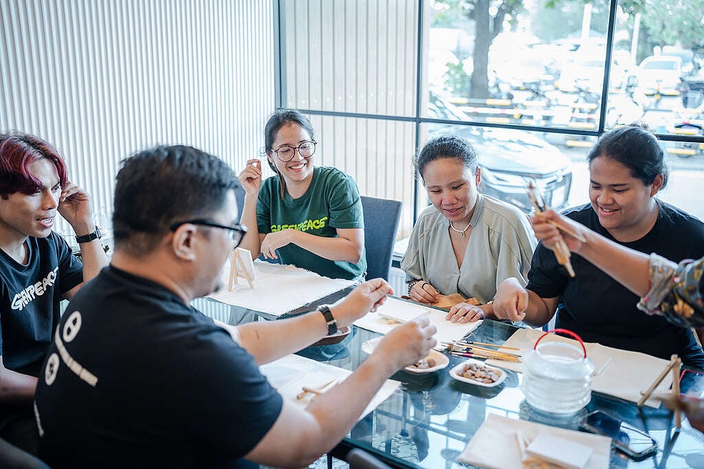 “การได้เห็นผู้บริจาค และอาสาสมัครที่อยู่กับเรามาอย่างยาวนาน นั่งลงแลกเปลี่ยนแรงบันดาลใจ มาสัมผัสธรรมชาติในสวนและทำงานศิลปะร่วมกันกัน เรียนรู้ว่าธรรมชาติสิ่งแวดล้อมว่ามีความสำคัญขนาดไหน คุยต่อยอดเรื่องความหวังและความเชื่อมั่นที่มีต่อกรีนพีซคือเครื่องยืนยันว่าพลังของผู้สนับสนุนคือสิ่งที่ขับเคลื่อนงานของเราอย่างแท้จริง” — พี่จิ้บ อัญชลี