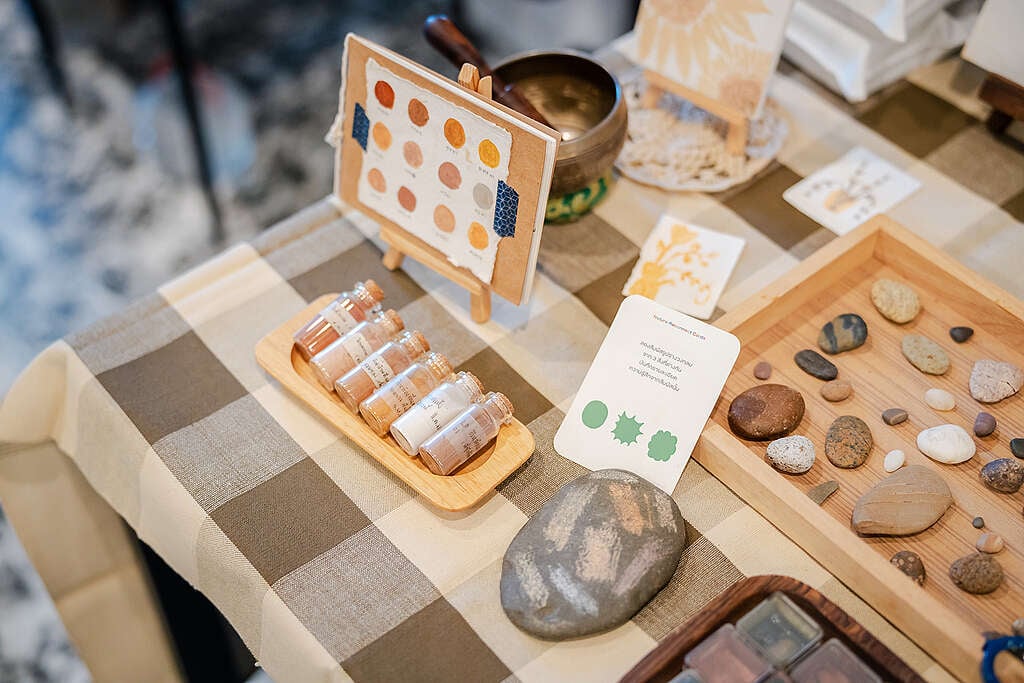 ความพิเศษของช่วงบ่ายคือ Workshop โดย คุณมล – มนตร์เนเจ้อ ที่พาเราเดินทางผ่านสีสันของ “หินสี” จากหลากหลายแหล่งทั่วไทย เพื่อให้เราเรียนรู้เรียกกับการเปลี่ยนแปลงของธรรมชาติ และแปรเปลี่ยนสีเหล่านั้นเป็นภาพแห่งความหวัง และปรารถนาดีต่อธรรมชาติในปี 2026