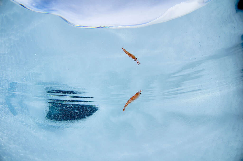 คริลล์มักรวมฝูงเป็นกลุ่มสีชมพูใกล้ผิวน้ำให้เห็นเด่นชัด แต่เมื่อถึงเวลาผสมพันธุ์ พวกมันจะดำน้ำลึกลงไปกว่า 500 เมตร แม้ตัวจะเล็กมาก แต่ความพยายามไม่น้อยเลย กระบวนการที่นักวิทยาศาสตร์เรียกแบบตรงไปตรงมาว่า “ไล่ ตรวจ โอบ งอ และผลัก” ใช้เวลาเพียงไม่กี่วินาที ก่อนทุกอย่างจะเสร็จสิ้นอย่างรวดเร็ว