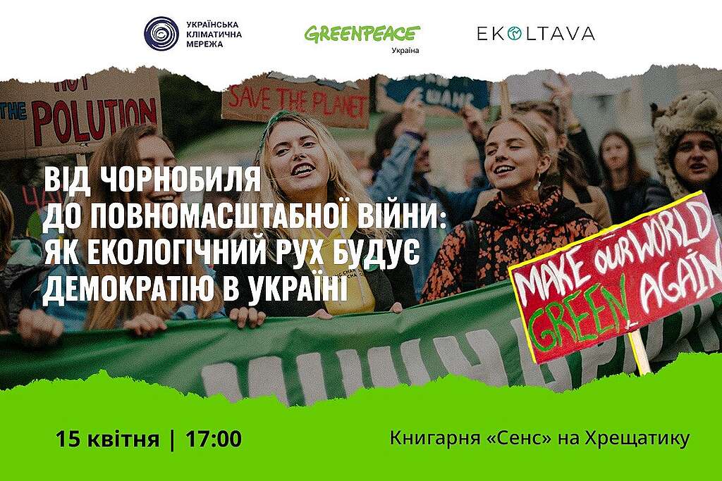 15 квітня 2026 року (середа) о 17.00 у Києві запрошуємо на презентацію дослідження «Екорух і війна: як повномасштабна війна вплинула на екологічний рух в Україні». Подія відбудеться у книгарні Сенс на Хрещатику та об’єднає представників екологічного руху, журналістів і всіх зацікавлених у темі довкілля та демократичного розвитку України.